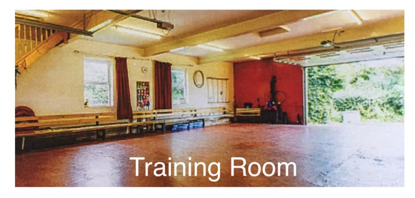 Our training room is 40 feet by 25 feet and is situated adjacent to the house just before the car park. Access to the room by a single door on the left hand side of the building being on the right hand side of the covered way. The toilet is directly across from this door.